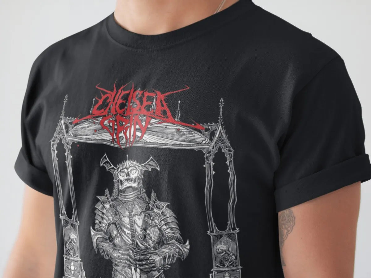 Corte clásico, cuello reforzado y ajuste cómodo para metaleros exigentes.