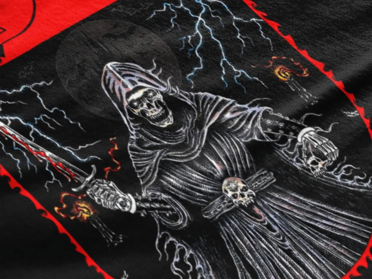 Corte clásico, cuello reforzado y ajuste cómodo para metaleros exigentes.